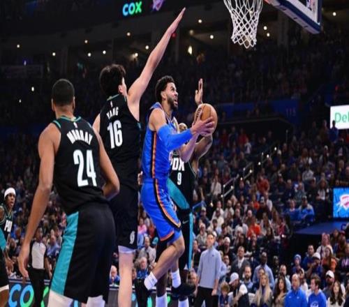 下半场回来,霍姆格伦、哈滕连续暴扣,开拓者的防守形同虚设。卡马拉快攻上篮,哈滕送上钉板大帽!此前表现出色的乐福,同样迟迟找不到状态,阿夫迪亚突破帮助球队止住颓势。米切尔三分命中,三节比赛结束,雷霆领先了28分。SGA出战30分钟,已经拿下了37分7次助攻,完全可以打卡下班了。