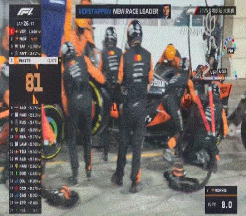 第25圈,诺里斯紧随进站换胎,耗时仅2.2秒,这是相当出色的表现!出站后他排在皮亚斯特里身后位列第5!