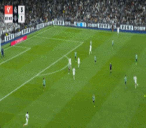 同样是罗德里戈任意球助攻队友破门,与塞维利亚的比赛中,贝林厄姆的头球是靠弹跳和身体素质力压对手,那么与贝蒂斯的这个进球,将贡萨洛在门前的跑位和摆脱能力展现得淋漓尽致。