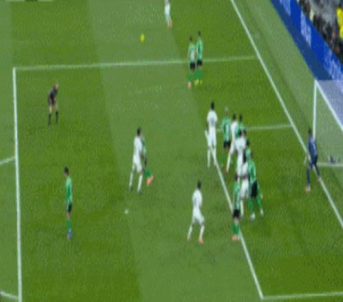 对战贝蒂斯的第一个进球,可以看到皇马在主罚定位球时威胁一直很大,只是头球得分点这2年比以前会少一些。