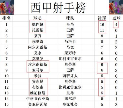 射手榜方面,姆巴佩16球高居榜首,托雷斯今天上演帽子戏法后,成为赛季第2个进球上双的球员,5球之差紧追姆巴佩。莱万,穆里奇8球并列第3,埃尔南德斯和亚马尔追上艾永和莫里罗,6球并列第6。安东尼,布坎南则是追上维尼修斯等人5球刚好挤入前十。